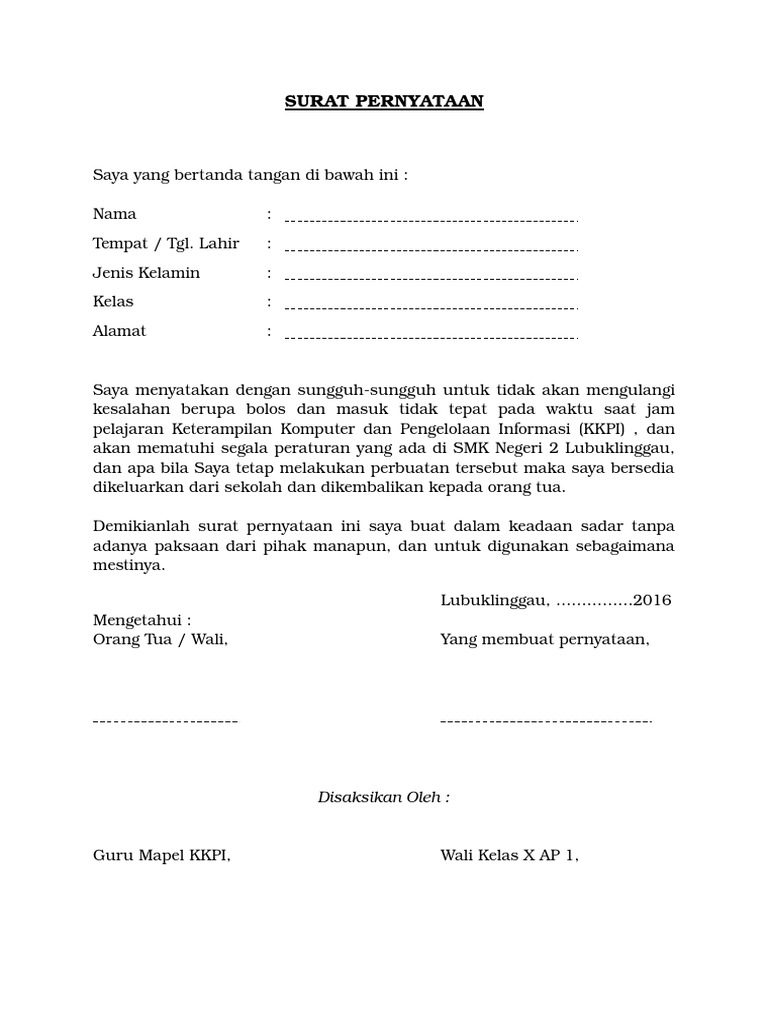 Contoh surat pernyataan siswa baru smk. We did not find results for: Check spelling or type a new query. Maybe you would like to learn more about one of these?